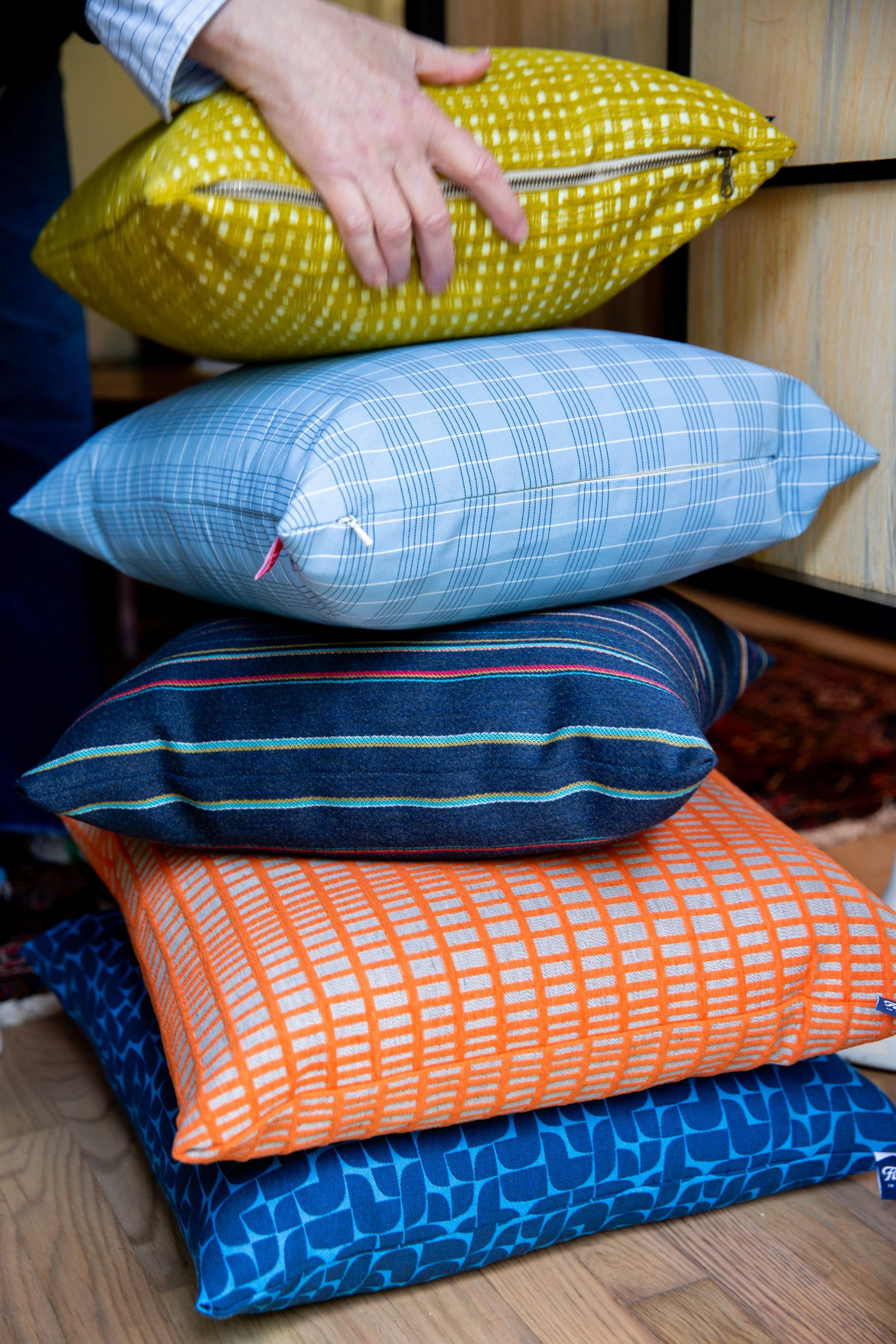 Got a bolt of fabric from an estate sale you don’t know what to do with? Need a quantity of something unique for someone unique? We’d love to hear from you. We’ve done customized gift bundles for bridal showers, take-home swag for dinner parties, bottle bags for special events, and an entire tabletop program in orange for a couple who, well, loves orange. We’ve provided solutions for that “I have no idea what to get them” person in everyone’s life, and made pillows from beloved articles of clothing and nostalgic fabric scraps found in a grandparent’s attic. We love preserving stories by sealing them into everyday objects.